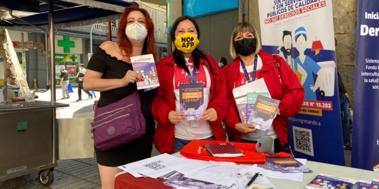 Foto: Karin Mendoza, Vicepresidenta de ANEJUD y Marianela Herrera, Pro Secretaria Nacional durante toda esta semana han estado trabajando para conversar con la ciudadanía y promover los patrocinios para aprobar la iniciativa Popular de Norma de ANEJUD