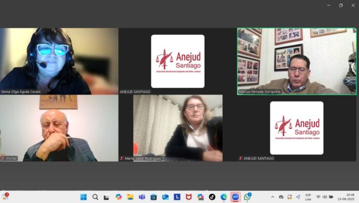 Desde las 20:00 horas de este miércoles 13 de agosto, el Directorio de Anejud Regional Santiago sostuvo una extensa reunión de trabajo que se prolongó por más de dos horas y media.